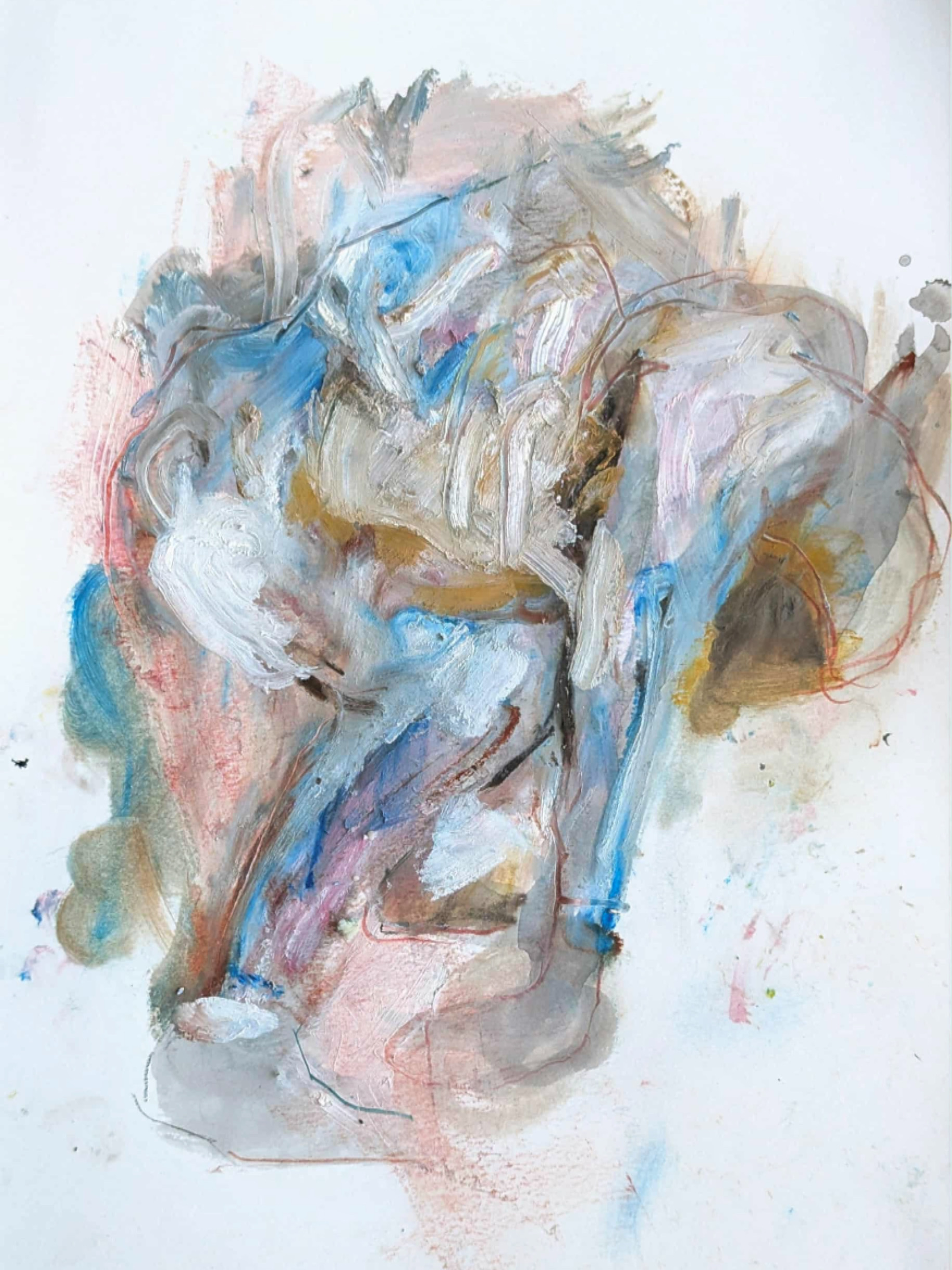 Fenti-nod #15, oil and oil stick on mylar, 2024, 42”x 25”