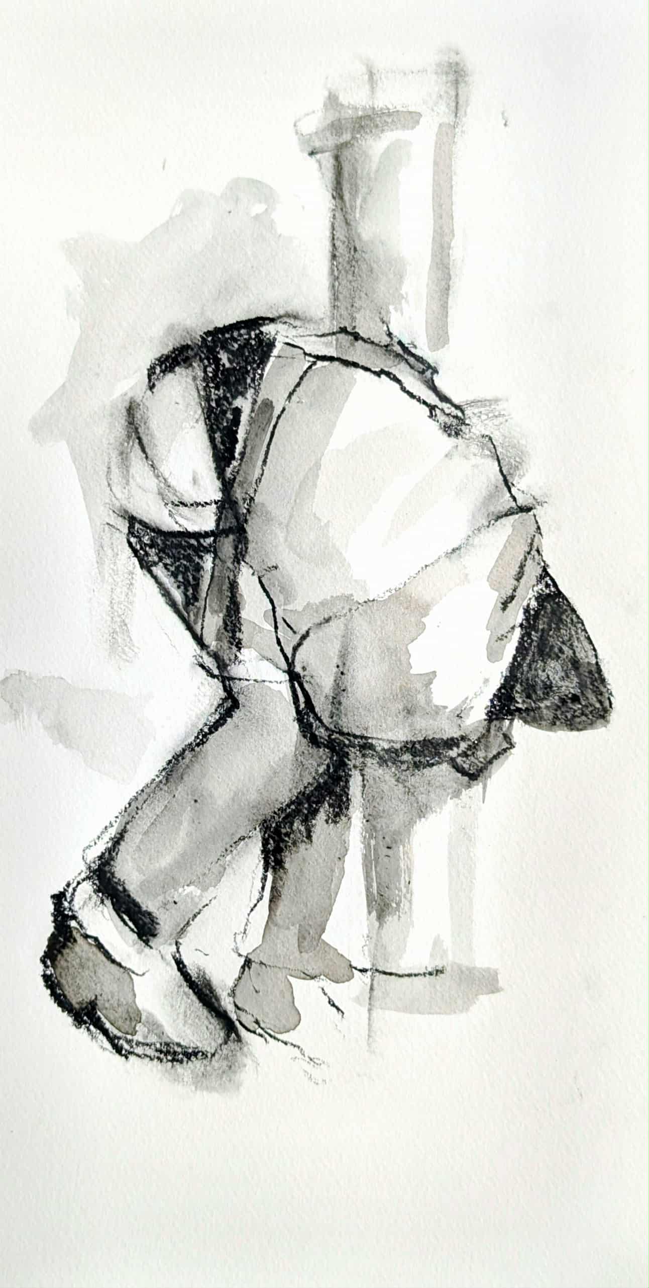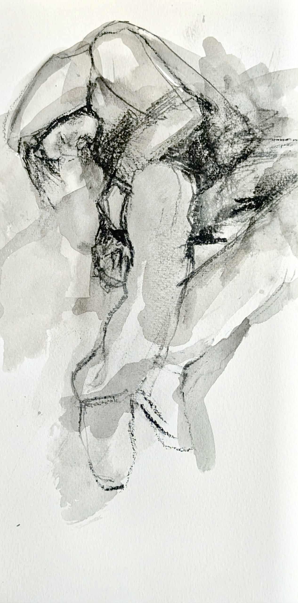 Fenti-nod #25, ink and charcoal paper n paper, 2025, 5”x 13”