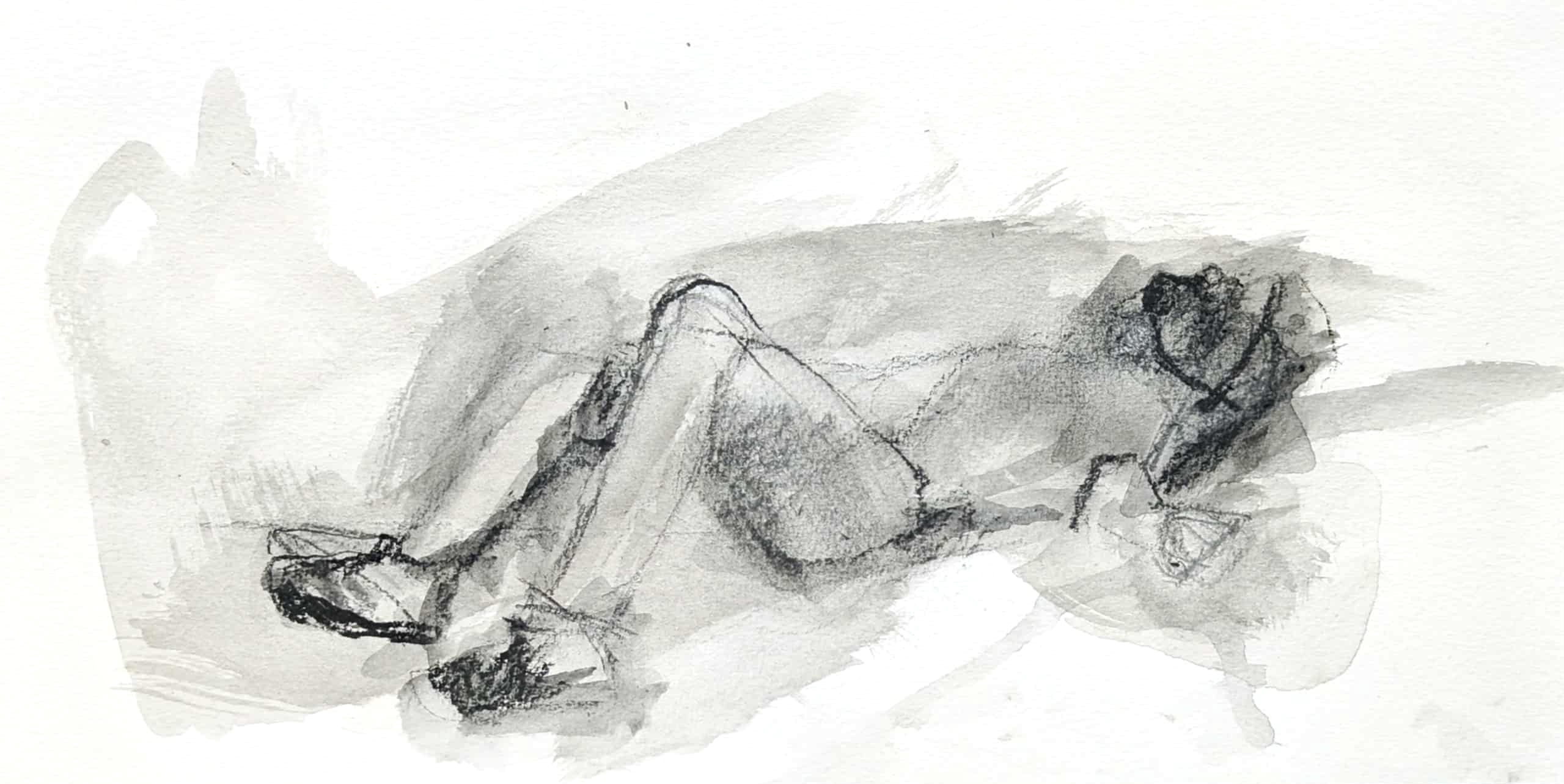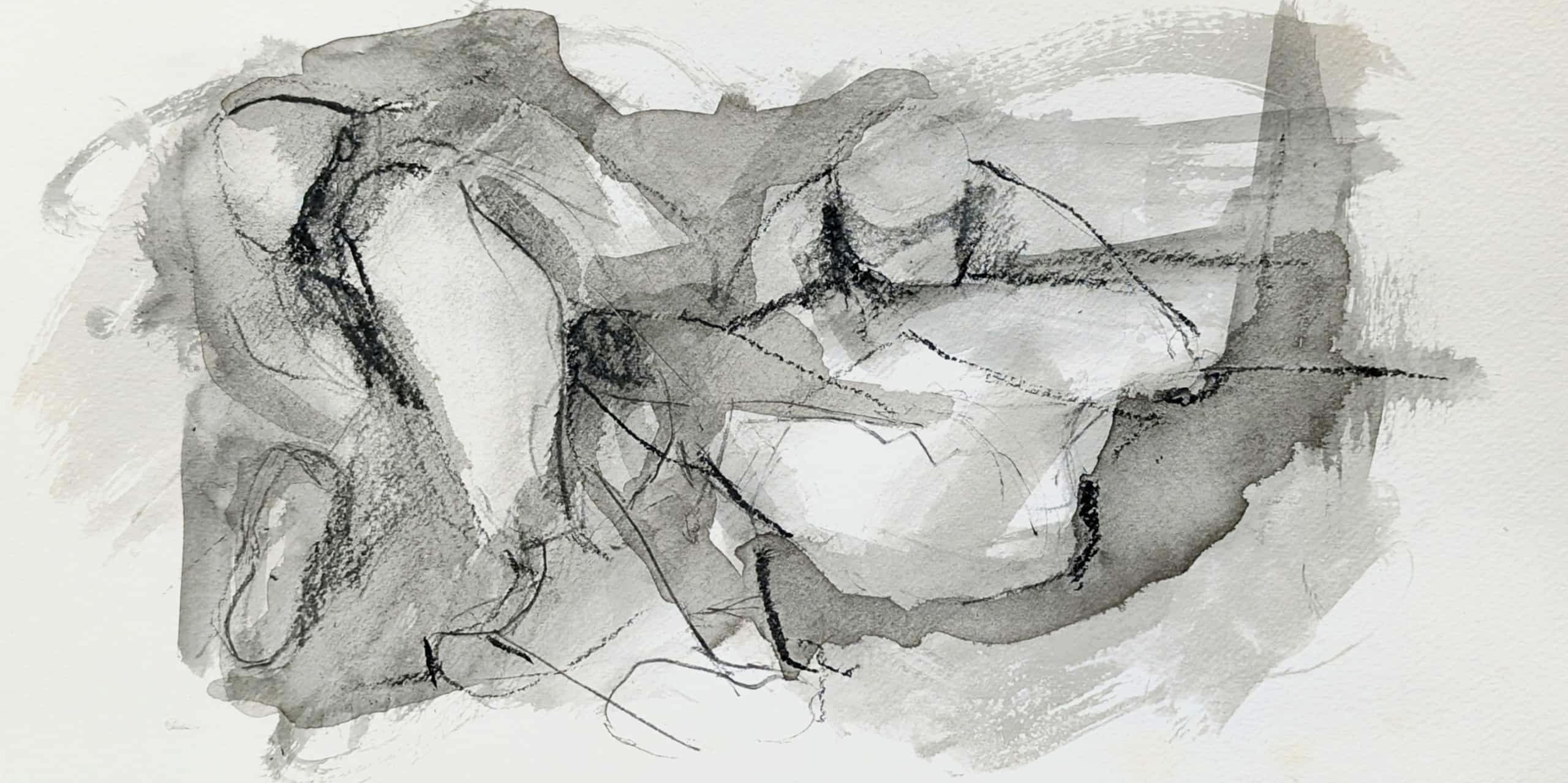 Fenti-nod #21, ink and charcoal paper n paper, 2025, 5”x 13”
